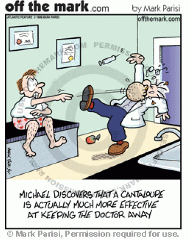 Cantaloupe Keeps Doctor Away Patient discovers cantaloupe as a more effective way to keep the doctor away.