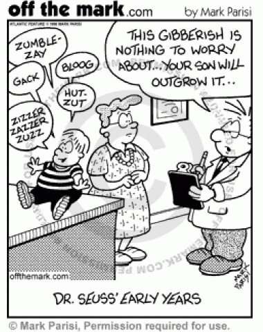 Dr. Seuss' Childhood Dr. Seuss is supposed to outgrow gibberish talk as a child.
