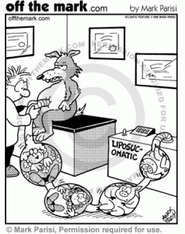 Big Bad Wolf Liposuction The Big Bad Wolf gets liposuction and the three little pigs, Little Red Riding Hood, and a grandmother come out of his stomach.