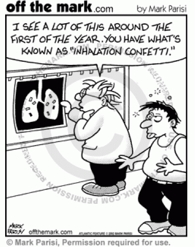 New Year Inhalation Confetti A man gets 'Inhalation Confetti' after a New Year's Party.