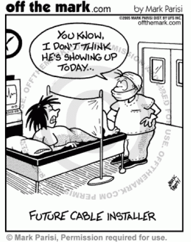 Birth of a Cable Installer A cable installer does show up for the birth delivery when he is supposed to.