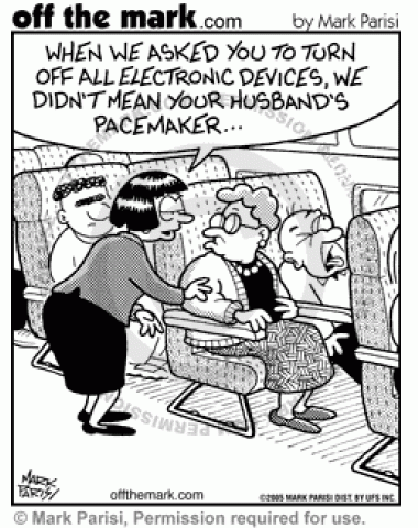 Pacemakers on a Plane Woman accidently turns off her husband's pacemaker on the plane.