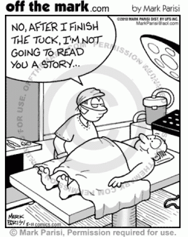 No Story with Tuck A patient getting a tummy tuck asks his surgeon to read him a bedtime story once he's tucked in.