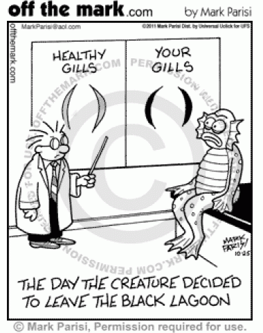 Black Lagoon Gills Creature leaves lagoon when doctor shows him blackened gills.