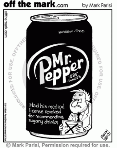 Mr. Pepper Mr. Pepper had his medical license revoked for recommending sugary drinks.