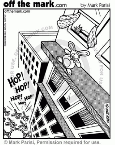Suicidal Rabbit Rabbits tell a suicidal rabbit at the top of a building to hop.