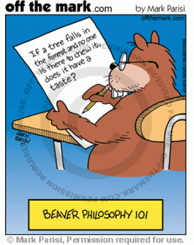 A beaver answers a philosophical question on a test for school.
