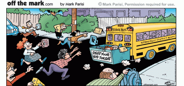 School Bus Forgot Bin A school bus has a bin on the back for parents to throw in things their kids forgot.