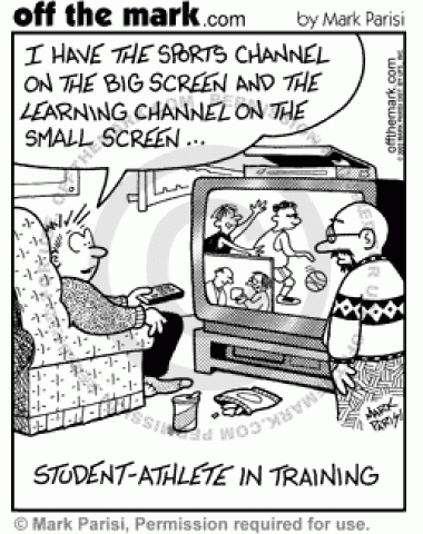 Student Athlete TV Training A student athlete trains with picture-in-picture on the television.