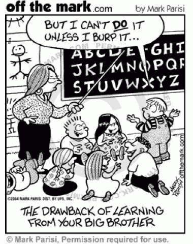 Your older brother doesn't make a good school teacher.