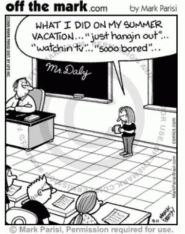 Student reads log of Twitter updates for her "what I did on my summer vacation" essay.