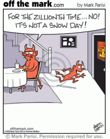 No Chance For Little Devil’s Snow Day In Hell Hope Annoyed devil dad in hell tells excited demon son for the zillionth time it’s not a snow day.