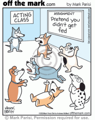 Actor dogs’ drama teacher’s assignment is to pretend they didn’t get fed dinner.