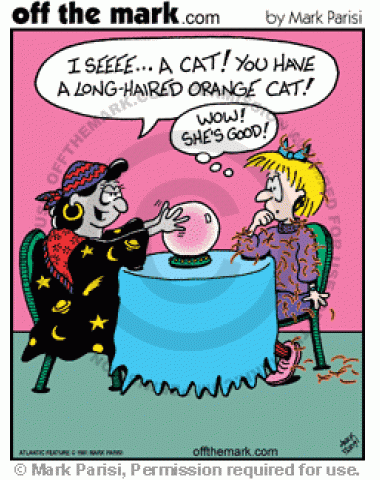 Fortune Teller sees cat fur on client and impresses client.</p>