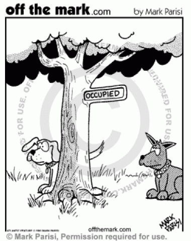 Dog Bathroom Occupied Sign A tree has an occupied sign for when dogs pee on it.