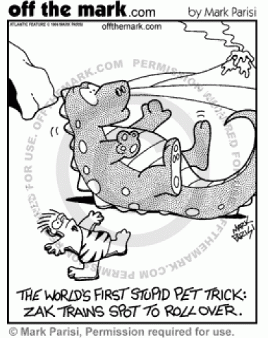 First Stupid Pet Trick A caveman teaches his pet dinosaur to roll over, but the dinosaur crushes him.