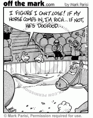 Dog Food Horse Race A dog will be dog food if the horse he bet on doesn't win the horse race.