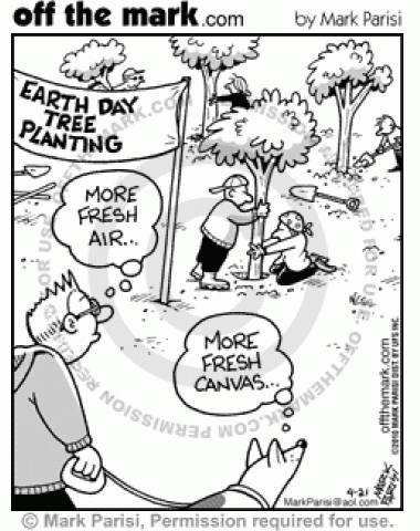 Earth Day Opinions A dog and owner have slightly different reactions to an Earth Day tree planting.