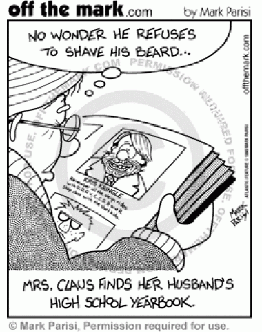 Santa's Beard Mrs. Claus finds her husband's yearbook and realizes that his ugly face is why he has a big beard.