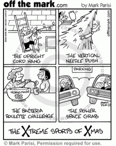 Extreme Christmas sports include The Vertical Needle Push and The Power Space Grab.