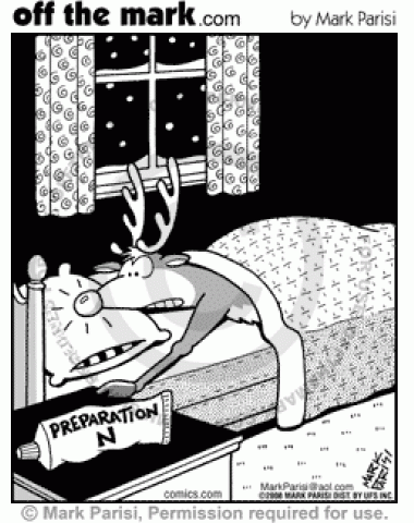 Rudolph the Reindeer reaches for tube of Preparation N to treat his shiny red nose.