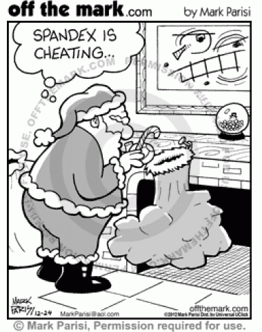 Spandex Christmas Stocking Santa considers someone's spandex stocking cheating.