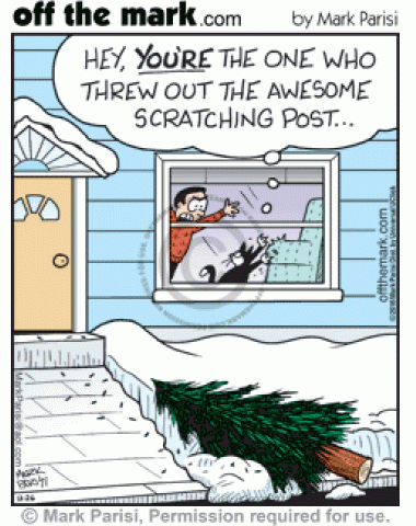 Christmas Tree Cat Scratching Post Cat scratching couch is disappointed owner threw out the awesome Christmas tree scratching post.
