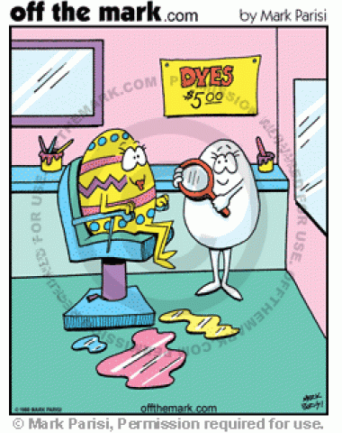 Egg goes to beauty salon to get a dye job.</p>
