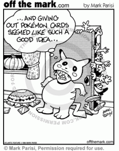 Pokemon Halloween Children swarm a man's house when he hands out Pokemon cards on Halloween.