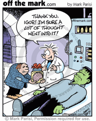 Thoughtful Brain Gift Dr. Frankenstein tells Igor a lot of thought went into his gift, a brain.