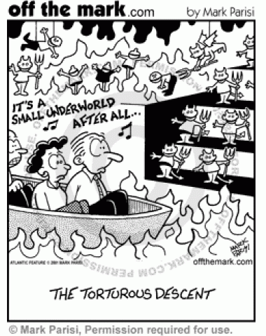 A torturous descent into Hell is accompanied by the song 'It's a small underworld after all.'