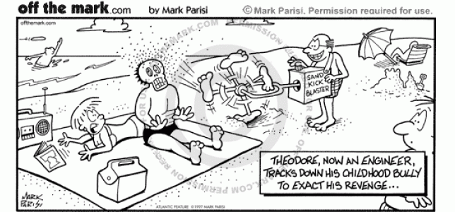 A man engineers a sand kicking machine to get revenge on his childhood bully.