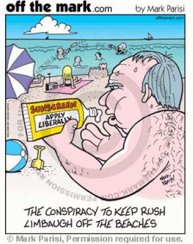 Rush Limbaugh stays off the beaches because he'd have to use sunscreen liberally.