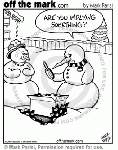 Snowman Carrot Gift A snowman gets a carrot peeler as a gift.