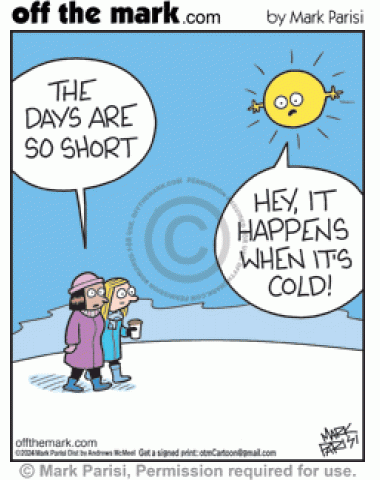 Winter Short Day Comment Insults Insecure Sun Self-conscious sun in sky tells women cold weather shortening days length excuse.