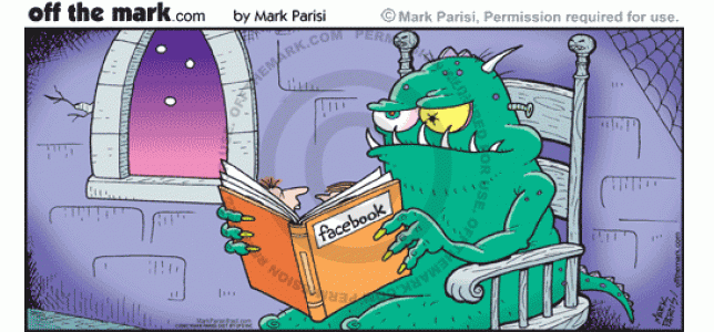 Monster Reads Facebook Monster reads book of people's faces called Facebook.