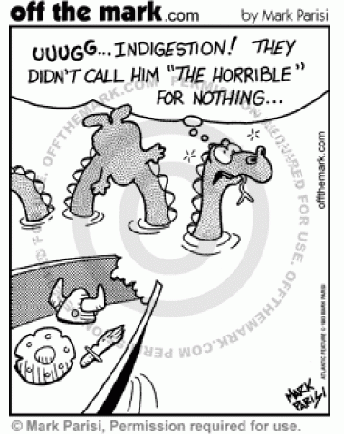 Hagar the Horrible Indigestion The Loch Ness Monster eats Hagar the Horrible and becomes ill.