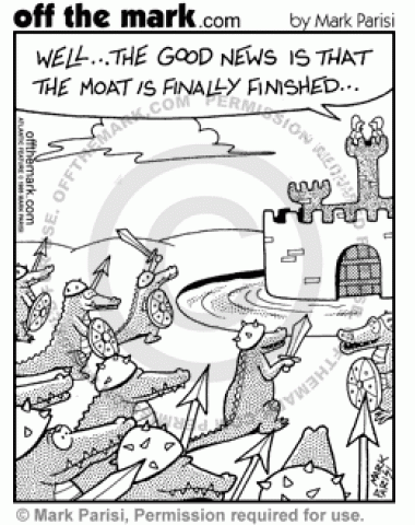 Moat Alligators The owners of a castle finish their moat, but then crocodiles attack.