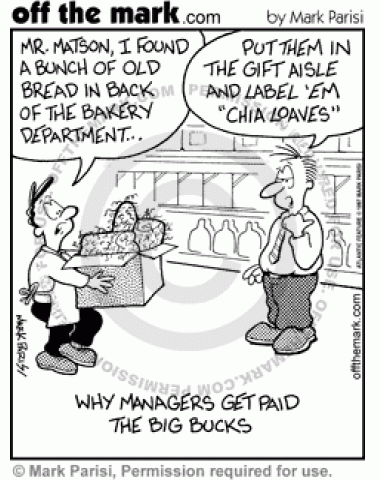 Smart Managers A manager tells an employee to put moldy old bread in the gift aisle as