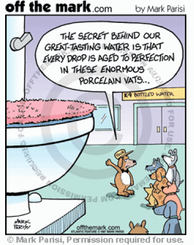 The secret to the tasty dog water is the aging in the porcelain toilets.