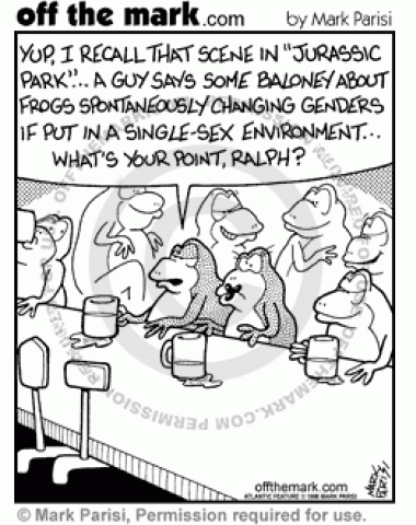 Frog Sex Change A frog changes sex because there are too many men in the bar.