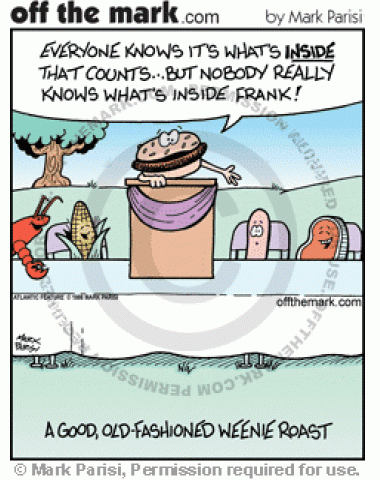 Old Fashioned Weenie Roast Pieces of food roast their friend Frank the hot dog.