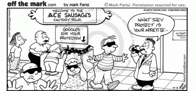 Sausage Factory Tour Glasses Ace Sausages hands out sunglasses on its tour to protect people's appetites.