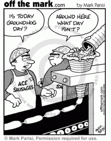 Groundhog Day Sausage Factory Everyday is Groundhog Day at the sausage factory.