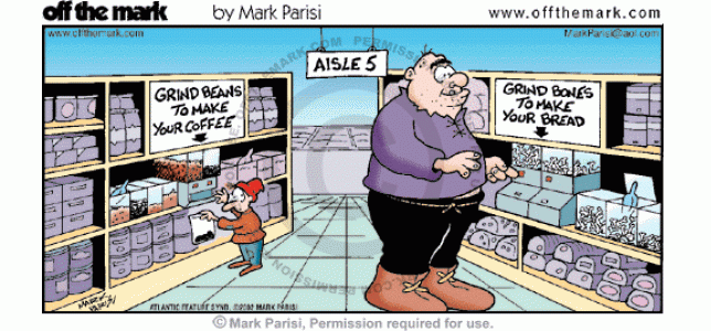 A giant goes to the supermarket, where you can grind bones to make your bread.