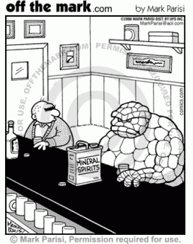 The Thing Mineral Spirits The Thing is at a bar with a guy drinking spirits while The Thing drinks mineral spirits.