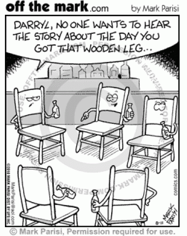 Chair gets told no one wants to hear the story about his wooden leg.