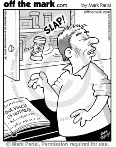 Pinch of Nutmeg Nutmeg slaps man for getting trying to get a pinch.