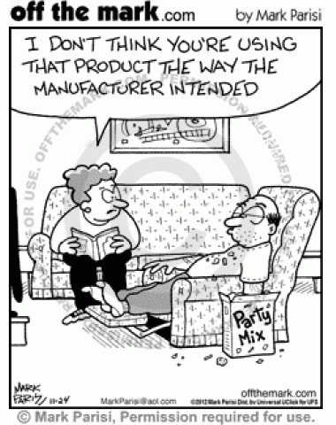 Lazy Party Mix Wife thinks husband is misusing party mix by eating it alone at home.