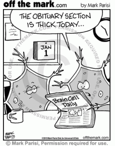 Brain Cell Obituaries Lots of brain cells die on New Year's Eve.